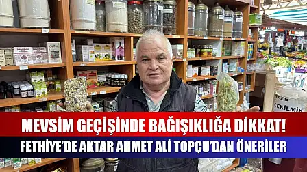 Havaların soğumaya başlamasıyla birlikte mevsim geçişi dönemi, bağışıklık sisteminin en çok zorlandığı zamanlardan biri olarak öne çıkıyor. Bu dönemde grip, soğuk algınlığı ve benzeri hastalıklardan korunmak için vatandaşların vücut direncini yüksek tutması büyük önem taşıyor. Fethiye'de uzun yıllardır aktar olarak hizmet veren Ahmet Ali Topçu, mevsim geçişlerinde doğal yollarla bağışıklığı güçlendirmenin önemine dikkat çekti.