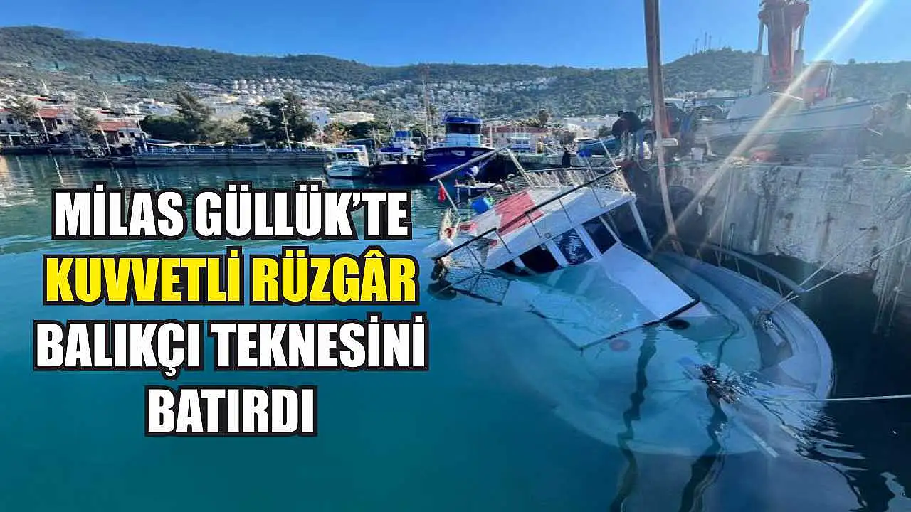 Muğla'nın Milas ilçesine bağlı Güllük Mahallesi'nde etkili olan sert hava şartları nedeniyle, limana bağlı bir balıkçı teknesi battı.