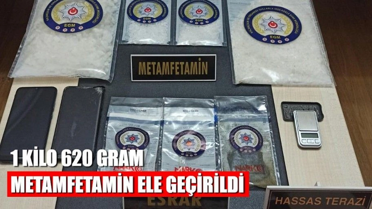 Muğla’nın Milas ilçesinde, Narkotik Suçlarla Mücadele ekiplerince yapılan operasyonda 1 kilo 620 gram ağırlığında çeşitli katkı maddeleriyle çoğaltılmış metamfetamin ve bir miktar esrar ele geçirildi.