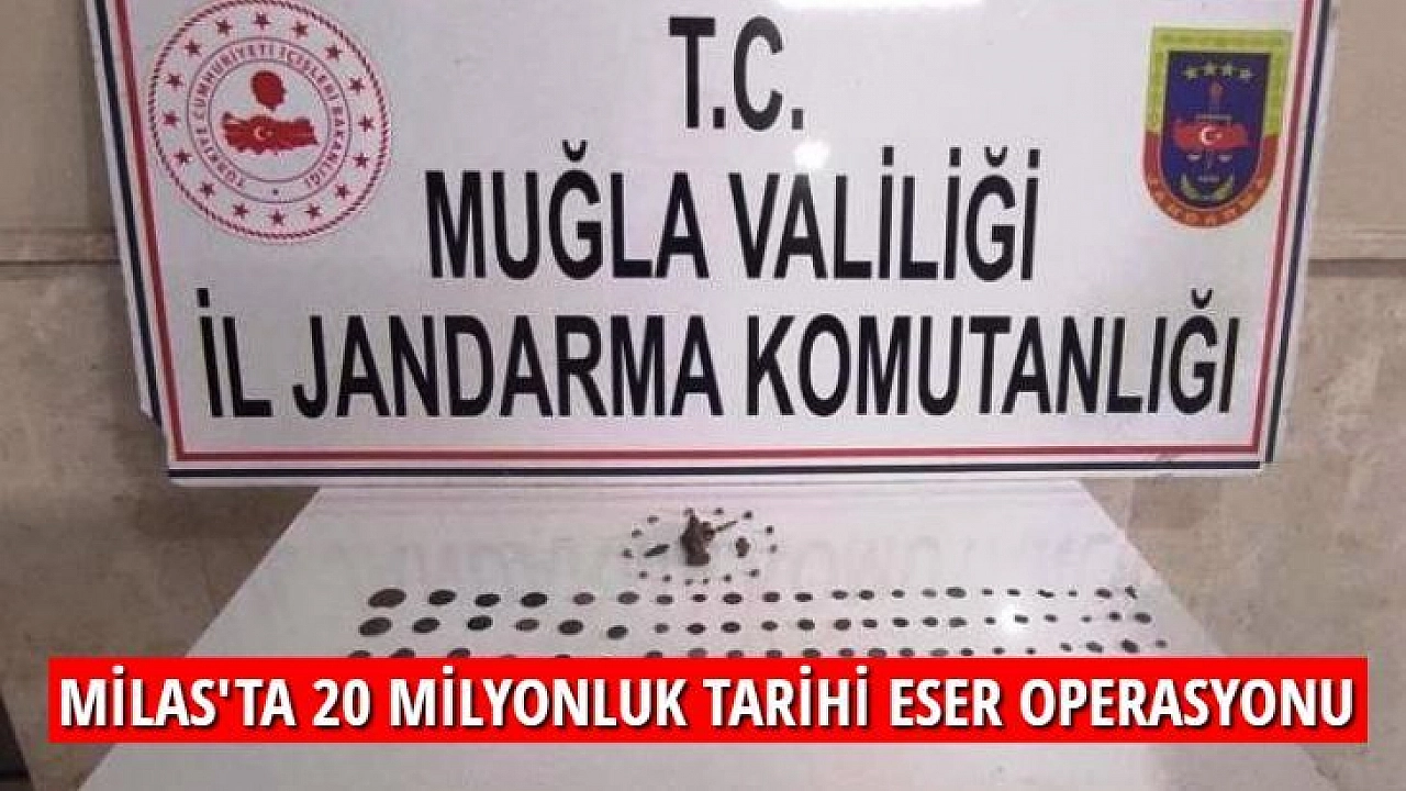 Edinilen bilgiye göre, Muğla İl Jandarma Komutanlığı ekipleri, Milas ilçe merkezinde yaptıkları saha çalışmaları sonucunda Y.K (31) ve A.K(34) isimli şahısların tarihi eser kaçakçılığı ve sikke satmaya çalıştığı bilgisini edindi. Alıcı kılığına giren Jandarma ekipleri, 20 milyon lira değerindeki tarihi objeleri satmaya çalışan şahısları suçüstü yakaladı. Yapılan operasyonda 88 adet değişik dönemlere ait sikke, 1 adet 9 cm uzunluğunda Artemis heykeli, 1 adet 3,5 cm uzunluğunda Meryem Ana heykel, 2 Adet ok-mızrak ucu, 14 Adet bronz kulak tıkacı olmak üzere 106 adet eser ele geçirilirken, şahıslar gözaltına alındı.
