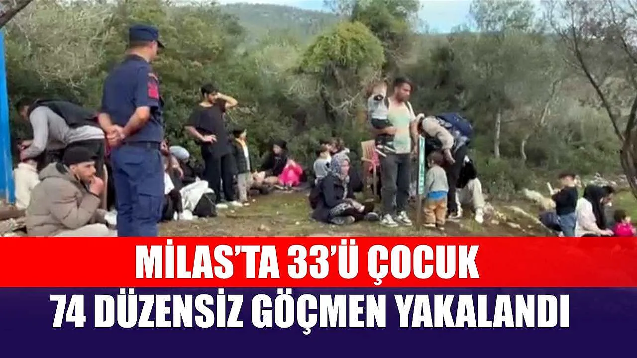 Muğla'nın Milas ilçesi Kazıklı koyunda yasa dışı yollardan kaçış hazırlığında olan 33'ü çocuk toplam 74 düzensiz göçmen yakalandı.