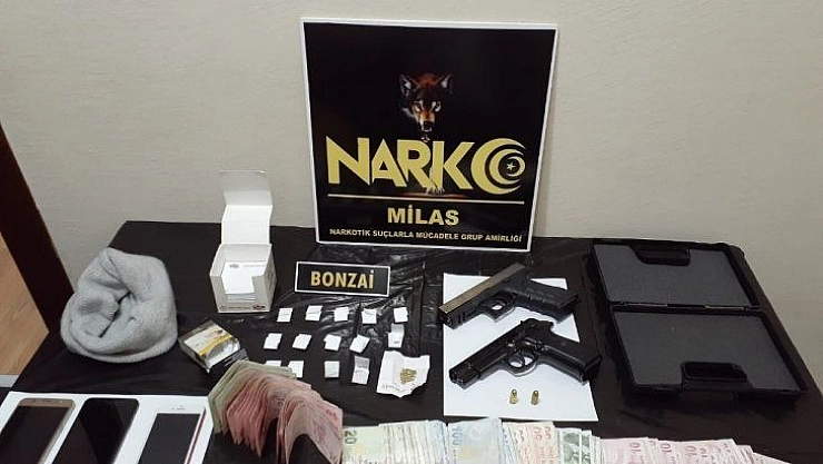 Muğla'nın Milas ilçesinde, uyuşturucu ticareti yaptığı tespit edilen bir kişi düzenlenen operasyon ile gözaltına alındı. Şahsın ikametinde uyuşturucu madde ve silahlar bulundu.
