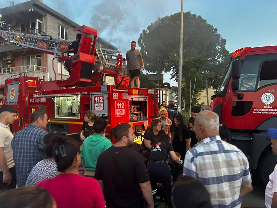 Muğla'nın Milas ilçesinde bir apartmanın 3. katında çıkan yangında evde bulunan 3 kişi binanın çatısına çıktı. İtfaiye ekiplerinin zamanında müdahalesi sayesinde hem vatandaşlar hem de evde bulunan kedi sağ olarak kurtarıldı.