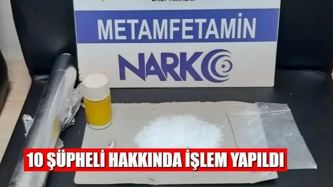Edinilen bilgiye göre, Milas ve Bodrum NSM Grup Amirliği Ekiplerince 5 ayrı yakalama çalışması gerçekleştirildi. Çalışmalarda 8 parça halinde 38.25 gram metamfetamin, 3 parça halinde 21.30 gram esrar ile çok sayıda uyuşturucu madde satmaya yarar alüminyum folyo ele geçirildi. Yakalamalar doğrultusunda 10 şüpheli hakkında adli işlem başlatılırken, 2 kişi gözaltına alındı. Uyuşturucu madde ticareti suçundan gözaltına alınan iki kişinin emniyetteki işlemleri sona erdikten sonra adli makamlara sevk edildi. Şahıslar çıkarıldıkları mahkemece tutuklandı.