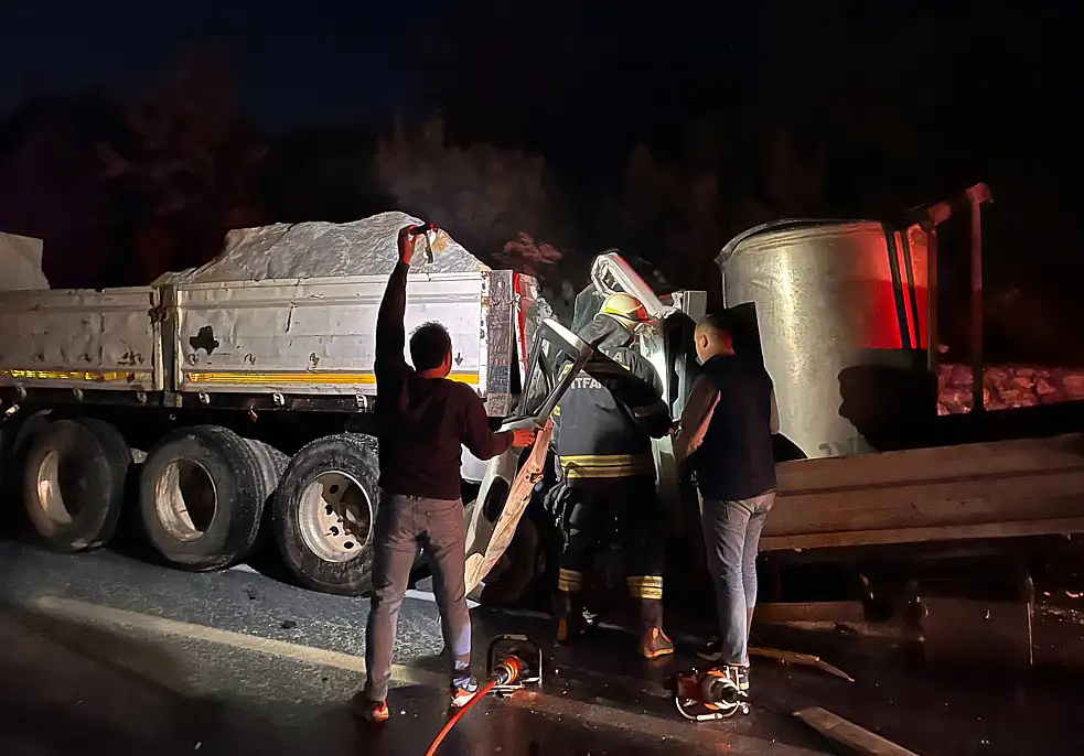 Milas-Yatağan karayolunda süt toplama aracının mermer yüklü TIR'ı arkadan çarpması sonrası meydana gelen kazada bir kişi yaşamını yitirdi.