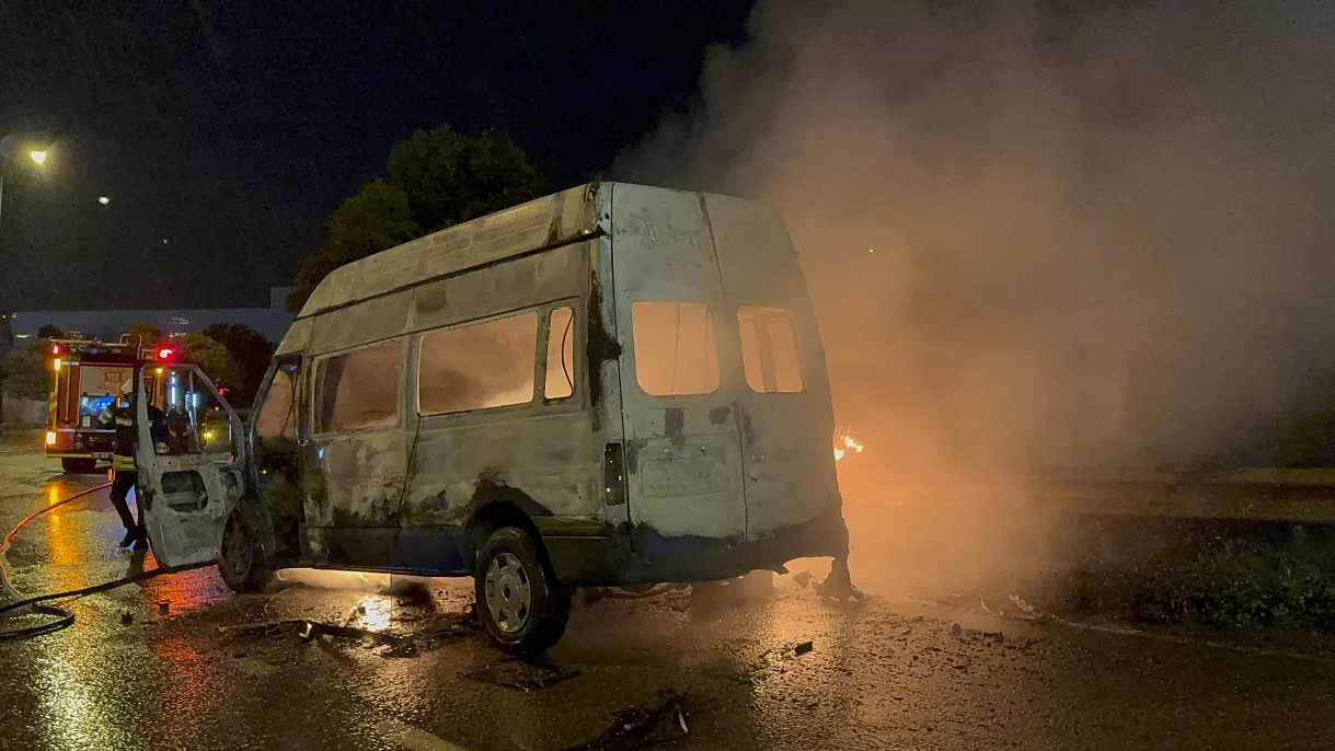 Minibüs alev alev yandı