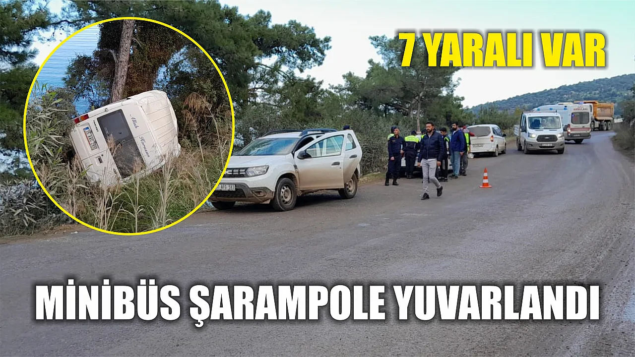 Muğla'nın Bodrum ilçesinde şarampole yuvarlanıp çam ağacına çarparak durabilen minibüsteki 7 kişi yaralandı.