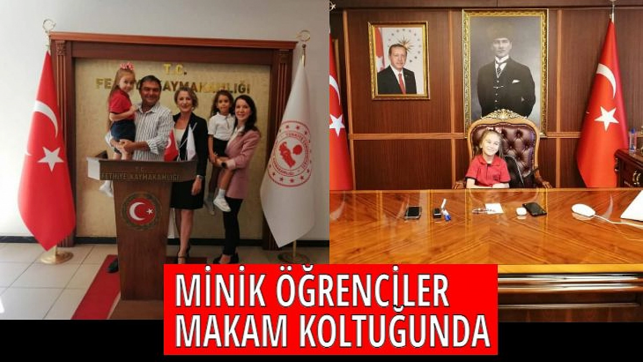 İlköğretim Haftası münasebetiyle Özel Fethiye Anaokulu öğrencileri Neva Başar ve Ezgi Ünal ile Okul Öncesi Öğretmeni Arzum Melisa Tokmak, Okul Müdürü Füsun Kılınçoğlu, Kaymakamımız Sn. Alper Balcı'yı makamında ziyaret ettiler. Minik öğrenciler sırayla Kaymakam Balcı'nın makam koltuğuna geçtiler.