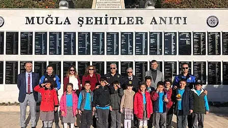 Ziyarette Muğla Şehit Aileleri Yardımlaşma ve Dayanışma Derneği Başkanı Mehmet Akkuş ve Menteşe İlçe Emniyet Müdürü Tümer Yılmaz da miniklere eşlik ederken, Türkiye Harp Malûlü Gazileri Şehit Dul ve Yetimleri Derneği Başkanı Sezai Kanlıyer öğrencileri bilgilendirdi.