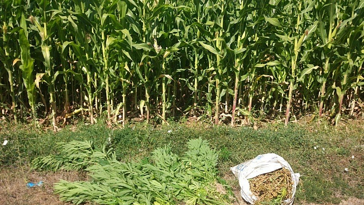 Operasyonda M.P’nin mısırların arasına ekilmiş 70 kök Hint keneviri, tarla içinde kesilerek kurutulmaya bırakılmış bin 400 gram esrar, evin yanında odunların içine gizlenmiş 151 gram esrar ile hassas terazi, M.P. ile Babası R.P. ortak ahır olarak kullanımda bulunan kısımda