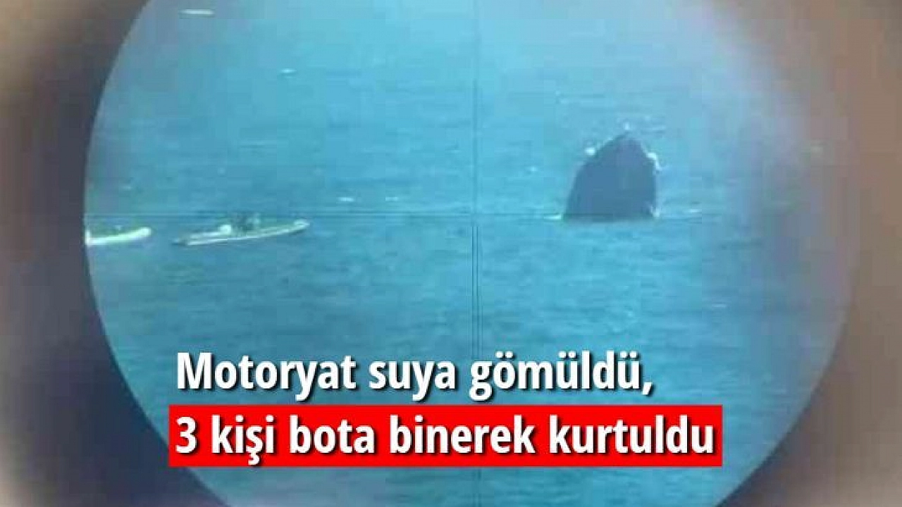 Motoryat suya gömüldü, 3 kişi bota binerek kurtuldu
