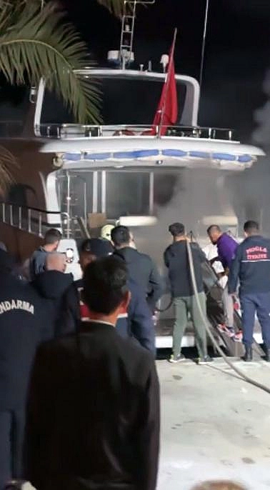 Muğla'nın Ula ilçesi turistik Akyaka Mahallesi limanında bağlı motoryatın makine dairesinde yangın çıktı.