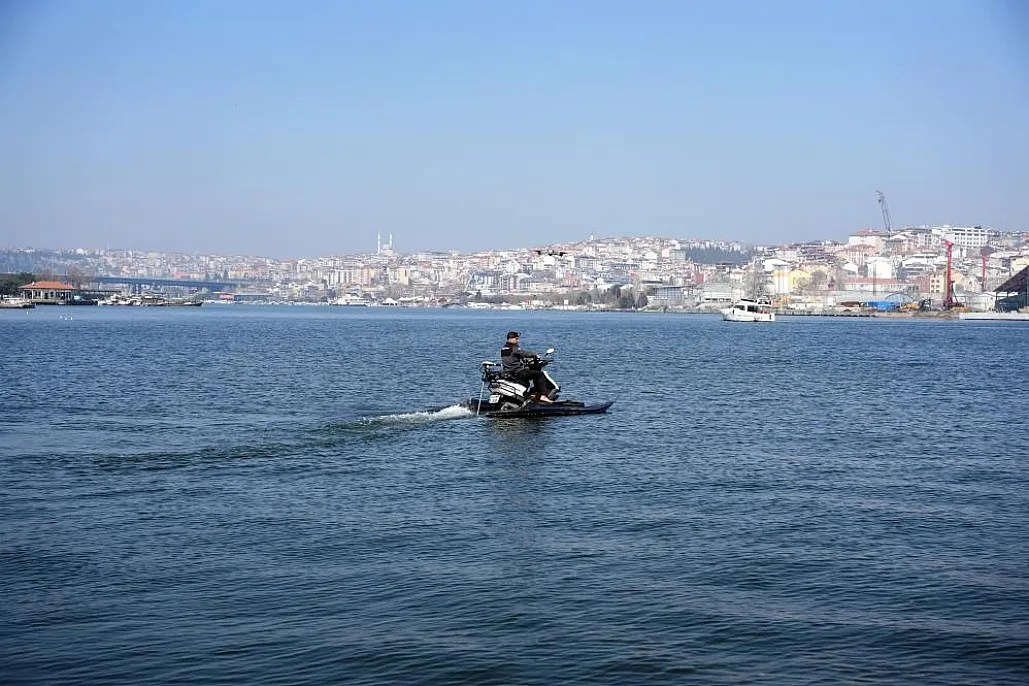 İstanbul'da 24 yaşındaki motosiklet tamircisi Mustafa İrfanoğlu kano ile motosikleti birleştirerek 'Motokano' yaptı. Trafikte sürücülerin şaşkın bakışları arasında ilerleyen İrfanoğlu'nun, Haliç gezintisi havadan görüntülendi.