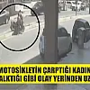 Motosikletin çarptığı kadın, ayağa kalktığı gibi olay yerinden uzaklaştı