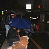 Motosikletten düşen kadını şemsiyelerle yağmurdan korudular
