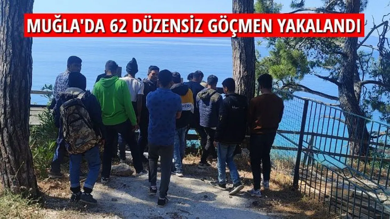 Muğla'da jandarma ekipleri ormanlık alanda aralarında kadın ve çocukların da bulunduğu 62 düzensiz göçmen yakaladı.