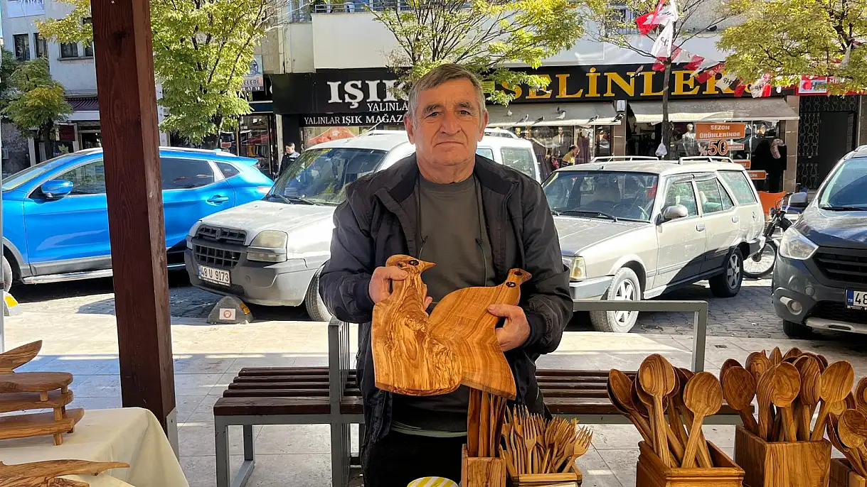 El işi üretimiyle dikkat çeken Atakan Öztuna, zeytinyağıyla yağladıkları ürünleri üç yıldır pazarda satışa sunuyor. Öztuna, “Muğla Yeryüzü Pazarı’nda kendi emeğimiz bunlar, kendimiz yapıyoruz. Zeytin ağacından yapıyoruz. Ufak bir atölyemizde bunlarla uğraşıyoruz. Yani bunların hepsini zeytinyağıyla yağlayıp ortaya çıkarıyoruz.
