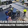 Muğla'da çılgına dönen kadın, polisin motosikletini tekmeleyip devirdi