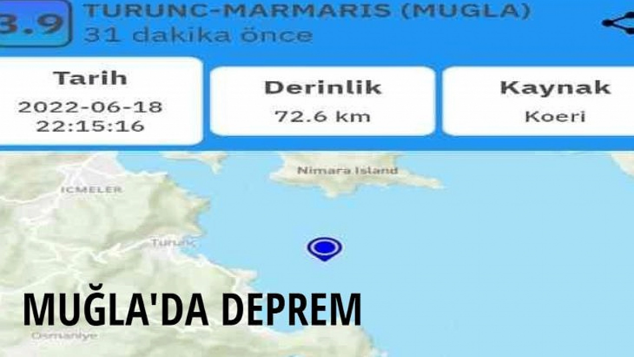 Muğla'nın Marmaris ilçesi Turunç mahallesinde saat 22.15 sularında meydana gelen deprem Marmaris ve Menteşe'de hissedildi.
