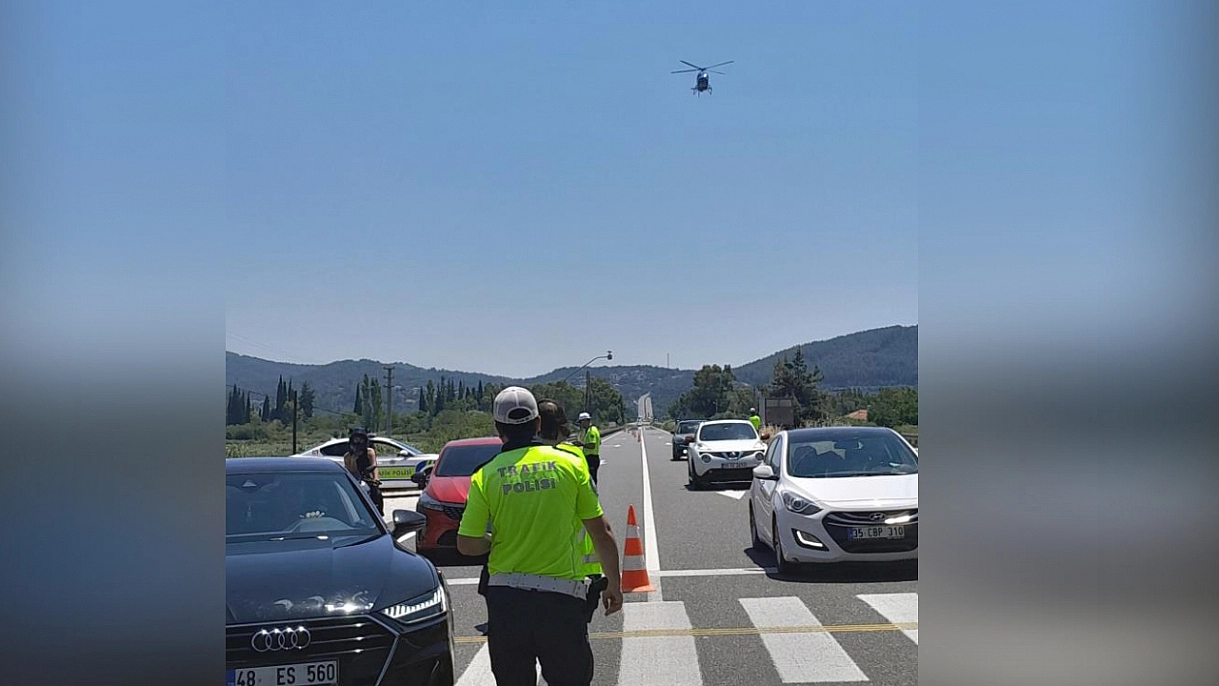 Muğla'da dron ve helikopter destekli trafik denetimi