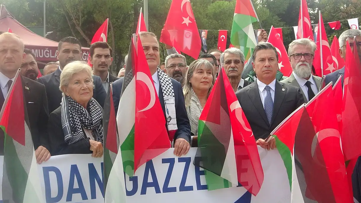 Muğla Valiliği öncülüğünde, Gazze'ye insani yardım götürmek üzere yola çıkan Küresel Sumud (Sumut) Filosu'na destek vermek amacıyla Menteşe Cumhuriyet Meydanı'nda geniş katılımlı bir program düzenlendi.