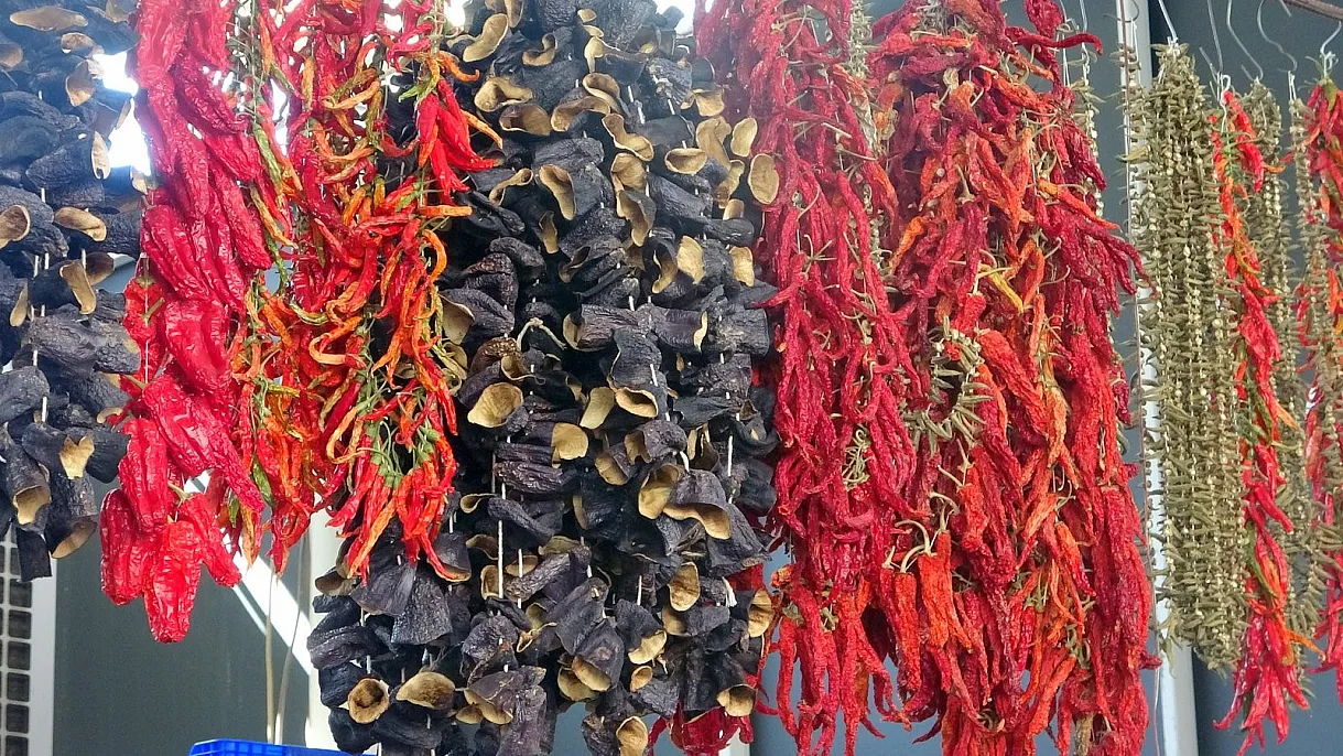 Muğla'nın Menteşe ilçesinde manavlar tarafından geleneksel yöntemlerle askıda kurutulan kışlık sebzeler, hem yurt içi hem de yurt dışından yoğun talep görüyor.