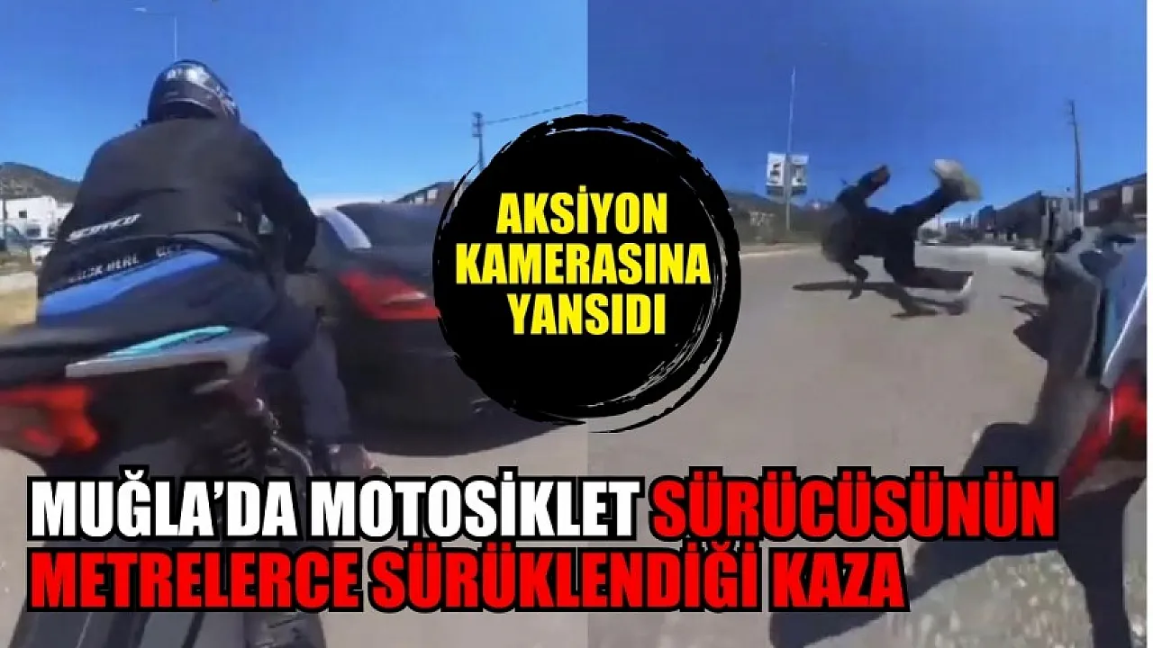 - Muğla'da motosiklet sürücüsünün metrelerce sürüklendiği kaza aksiyon kamerasına yansıdı