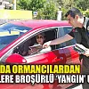 Muğla Orman Bölge Müdürlüğünde özellikle piknik ve mangal ateşinden çıkan orman yangınlarının önlenmesi amacıyla bayram tatili için yöreye gelen ziyaretçilere broşür dağıtılıyor.