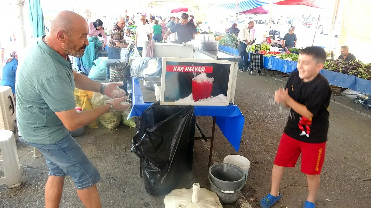 Muğla'da sıcaktan bunalan vatandaşlar kar helvasıyla serinliyor