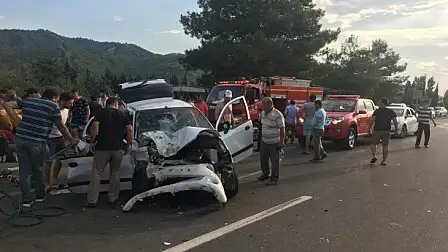 Muğla'nın Seydikemer ilçesinde tatil dönüşündeki otomobilin park halindeki iki araca çarpması sonucu 4 kişi yaralandı.