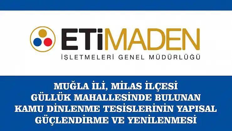 Muğla İli, Milas İlçesi Güllük Mahallesinde bulunan Kamu Dinlenme Tesislerinin Yapısal Güçlendirme ve Yenilenmesi yapım işi 4734 sayılı Kamu İhale Kanununun 19 uncu maddesine göre açık ihale usulü ile ihale edilecek olup, teklifler sadece elektronik ortamda EKAP üzerinden alınacaktır.