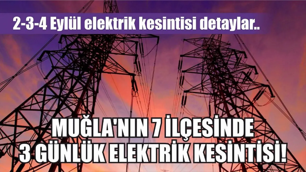 - Muğla'nın 7 ilçesinde 3 günlük elektrik kesintisi! 2-3-4 Eylül elektrik kesintisi detaylar..