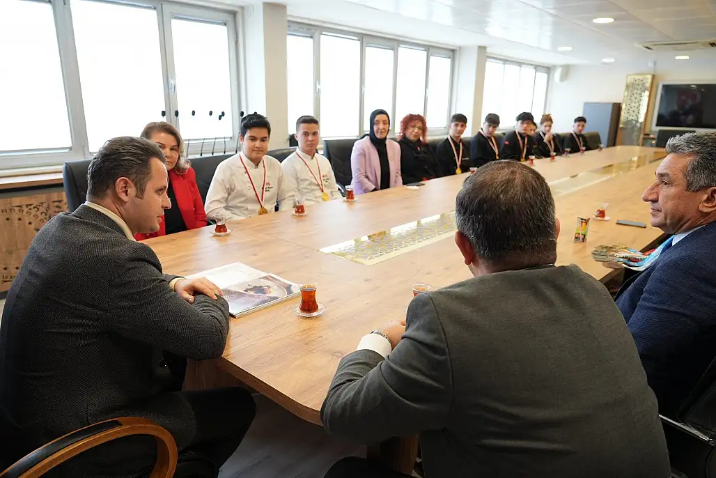 Muğla İl Milli Eğitim Müdürü Emre Çay, karate branşında dünya şampiyonluğu elde eden Asel Şahin ve gastronomi alanında madalyaları toplayan turizm lisesi öğrencilerini makamında ağırlayarak başarılarını kutladı.