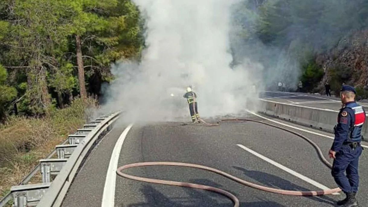 Muğla'nın Sakar Geçiti'nde araç yangını