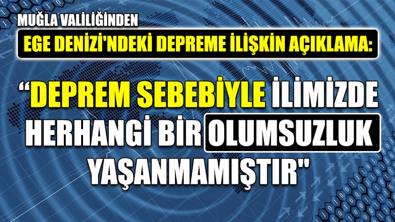Muğla Valiliği, Ege Denizi'nde meydana gelen 6 büyüklüğündeki deprem nedeniyle kentte herhangi bir olumsuzluğun yaşanmadığını bildirdi.