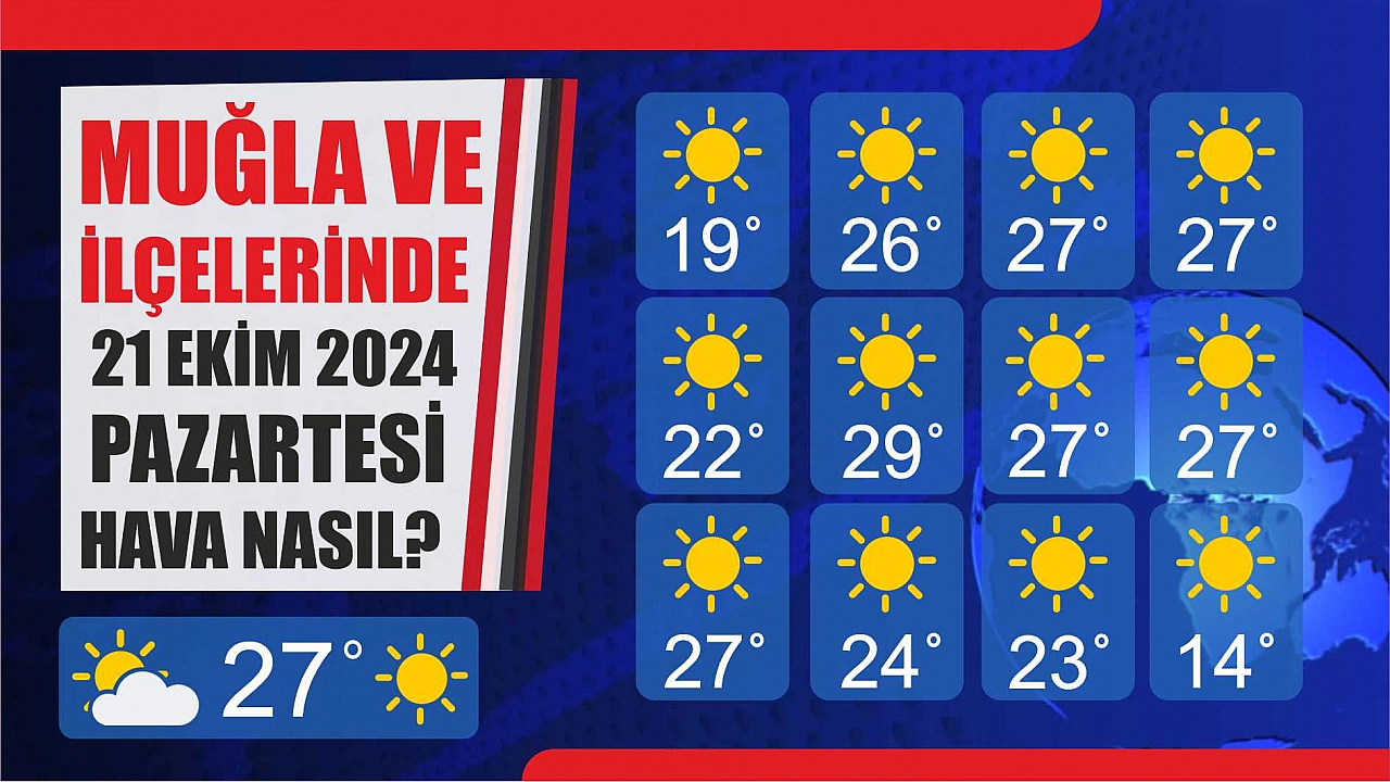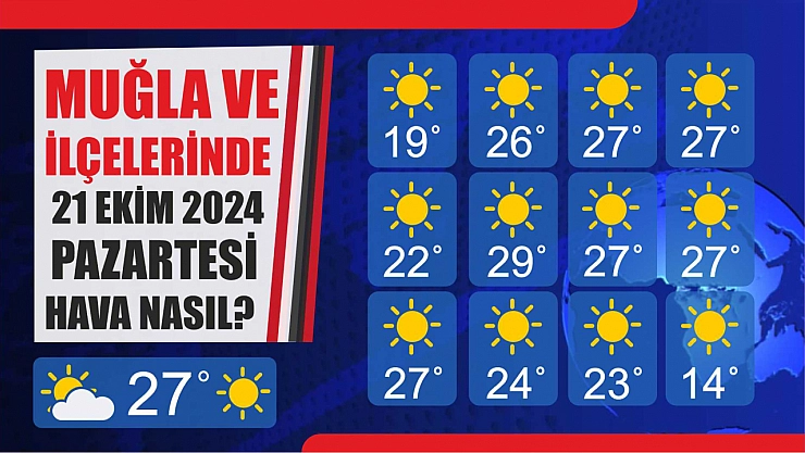 21 Ekim 2024 Pazartesi Muğla ve ilçelerinde güneşli bir hava hâkim olacak ve her bir ilçede sıcaklık değerleri farklılık gösterecek.