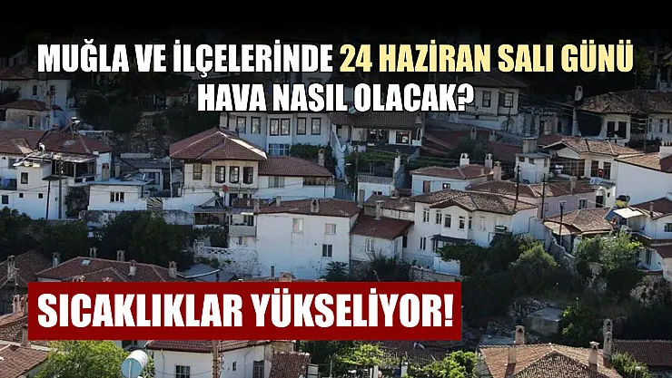 24 Haziran Salı günü, Muğla'nın 13 ilçesinde genel olarak güneşli ve çok sıcak bir hava bekleniyor. Sıcaklıklar ilçelere göre 17°C ile 39°C arasında değişecek.