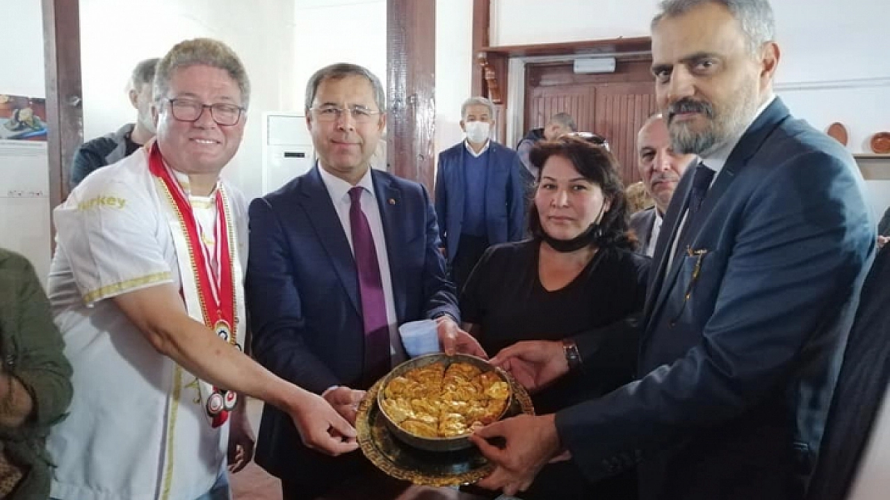 Açıklamada, "Odamız tarafından tescil çalışmaları yürütülerek coğrafi işareti alınan Muğla Saraylısı’na dikkat çekmek amacıyla küçük bir tepside, altın tozu serpilmiş Muğla Saraylısı hazırlandı ve dilimi 5 Bin TL’den satışa çıkarıldı. Ürünlerin markalaşması konusunda hassasiyet gösteren ve çalışmalarını bu noktada yoğunlaştıran odamız, Muğla Saraylısı’nın tanıtımına katkı sağlamak, etkinliğe dikkat çekmek ve platforma destek sağlamak amacıyla hazırlanan Muğla Saraylısından bir dilim satın almış bulunmaktadır.