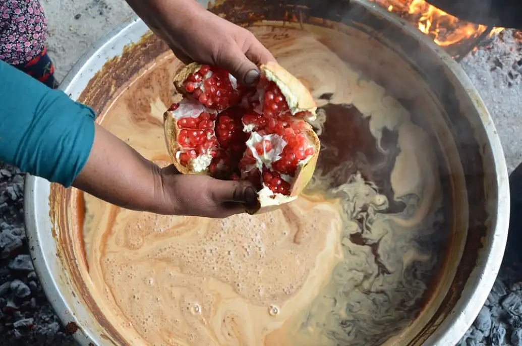 Aydın'ın Efeler ilçesi Dağeymiri Mahallesi'nde nar ekşisi üretimi, dededen kalma yöntemlerle sürdürülüyor. Vatandaşlardan Muharrem Ay ve ailesi, topladıkları narları tahta teknede ezip odun ateşinde kaynatarak geleneksel lezzeti yaşatıyor.