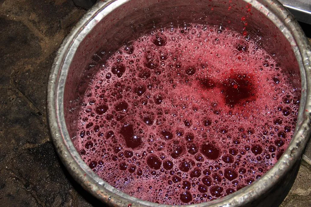 Aydın'ın Efeler ilçesi Dağeymiri Mahallesi'nde nar ekşisi üretimi, dededen kalma yöntemlerle sürdürülüyor. Vatandaşlardan Muharrem Ay ve ailesi, topladıkları narları tahta teknede ezip odun ateşinde kaynatarak geleneksel lezzeti yaşatıyor.