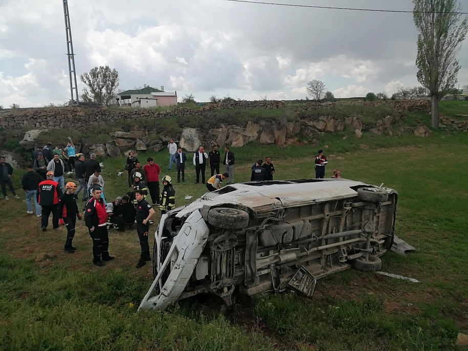 Öğrenci servisinin devrilmesi sonucu 15 öğrenci yaralandı.