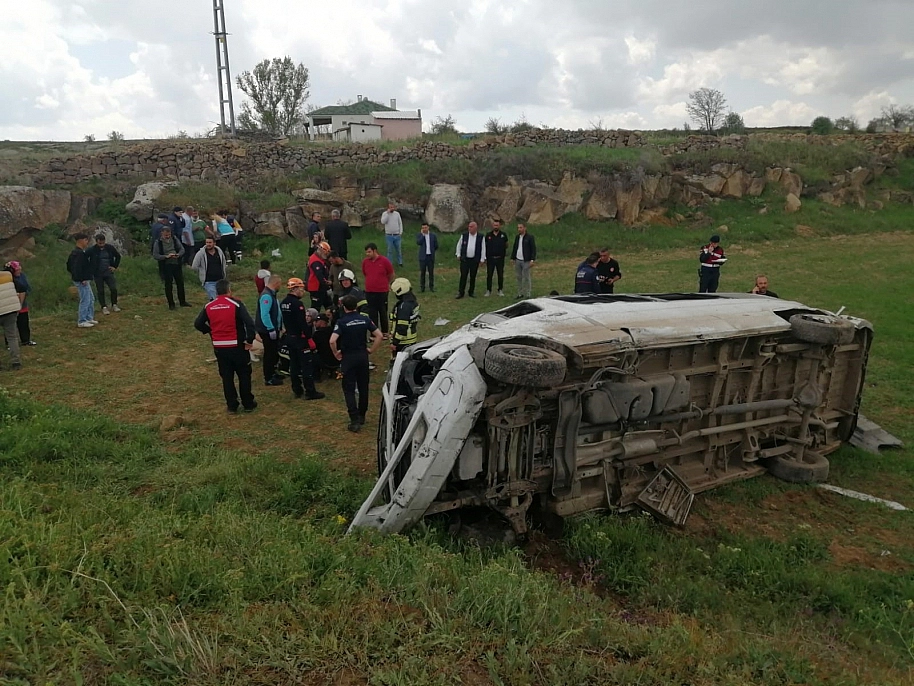 Öğrenci servisinin devrilmesi sonucu 15 öğrenci yaralandı.