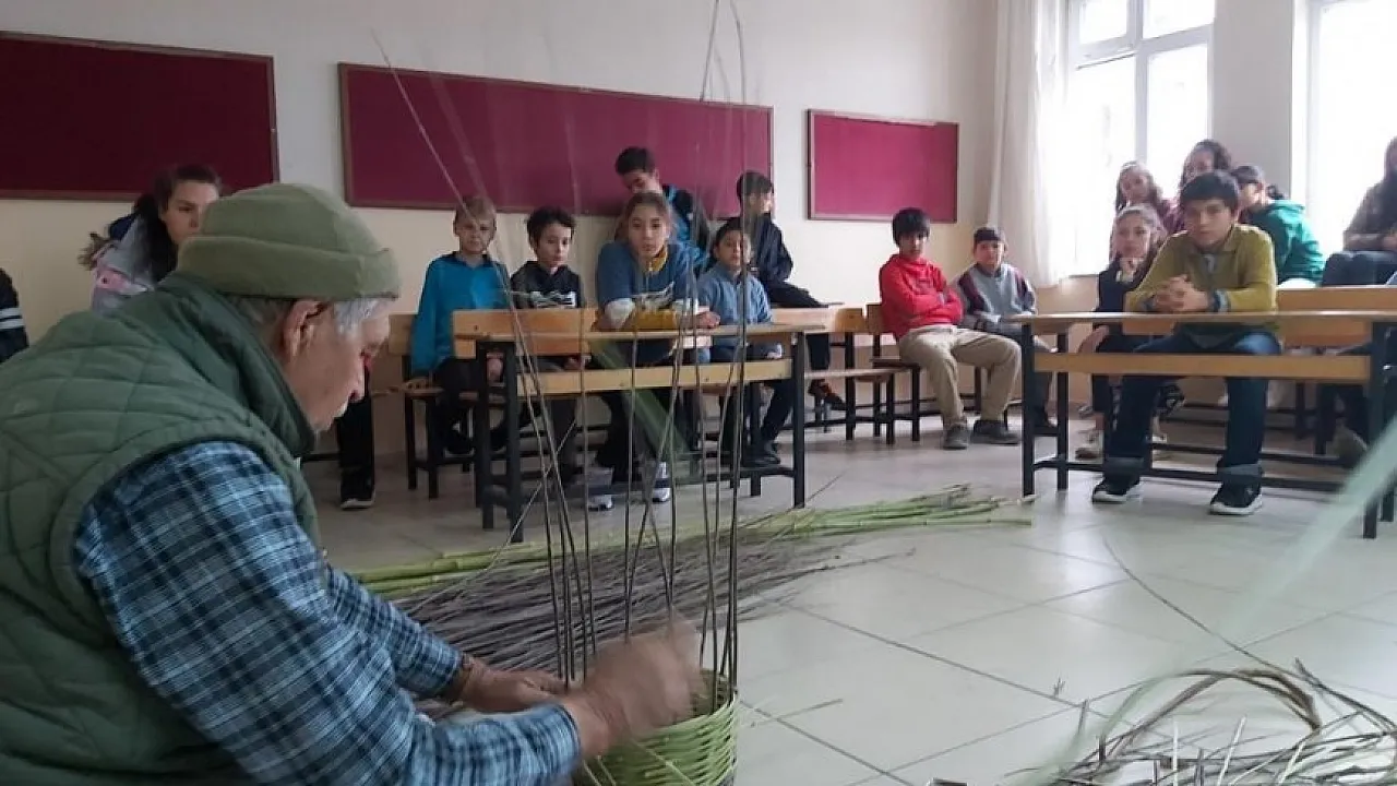 Köyceğiz Ortaokulu öğrencilerine sepet örme sanatı öğretildi.