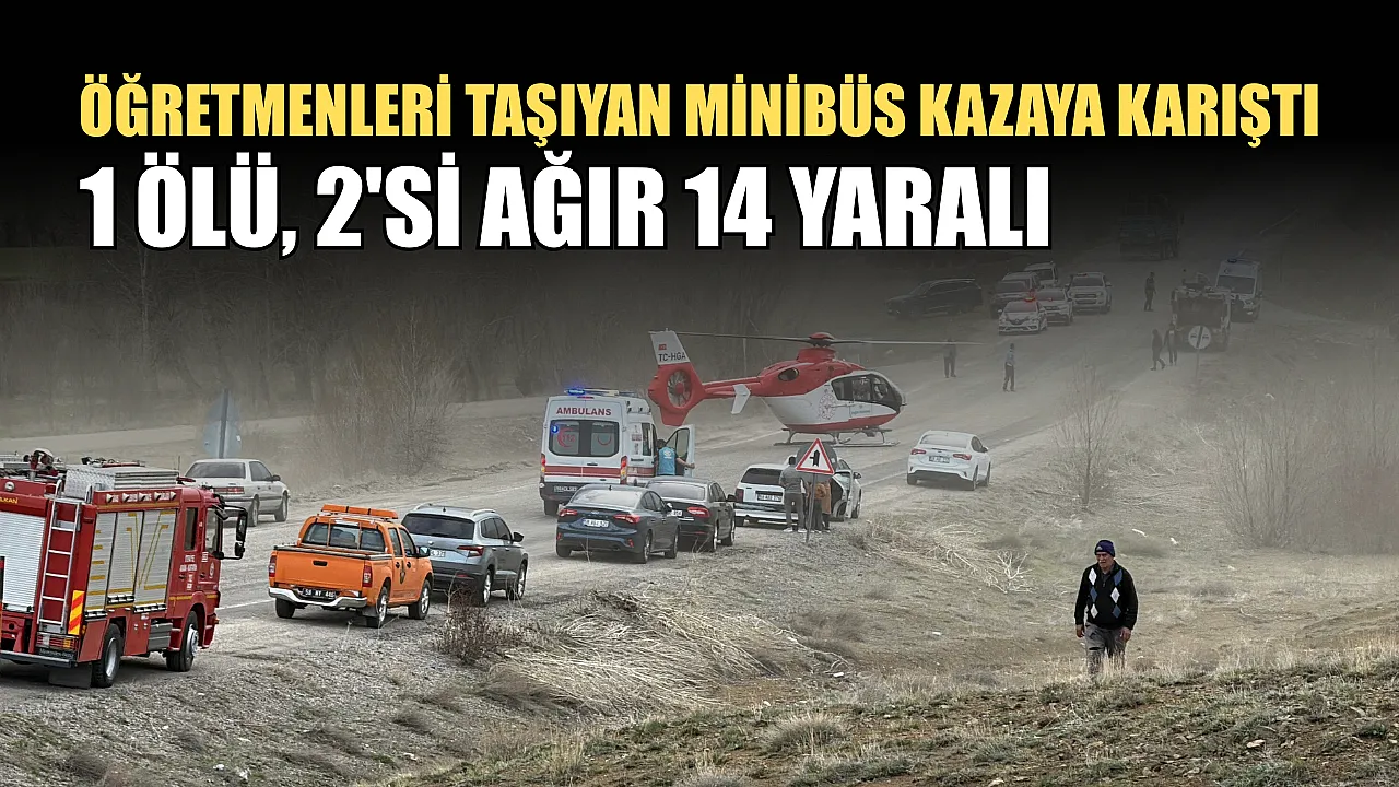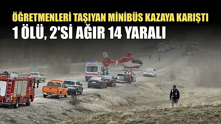Öğretmenleri taşıyan minibüs kazaya karıştı, ilk belirlemelere göre 1 kişi öldü, 2'si ağır 14 kişi yaralandı.