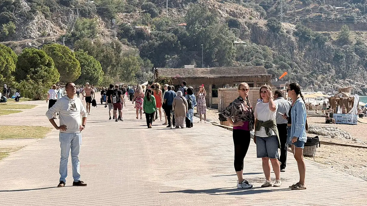 Muğla'nın Fethiye ilçesinde tarihler 11 Ekim'i ve hava sıcaklığının 23 dereceyi göstermesine rağmen güzel havayı fırsat bilen tatilciler Belcekız Plajı'nda denizin tadını çıkardılar.