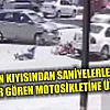 Ölümden dönen sürücünün motosikletinin halini görünce üzüldüğü anlar da görüntülerde yer aldı.