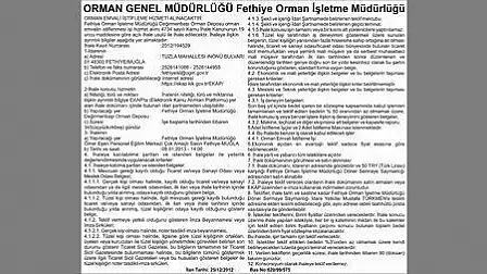 ORMAN GENEL MÜDÜRLÜĞÜ Fethiye Orman İşletme Müdürlüğü-