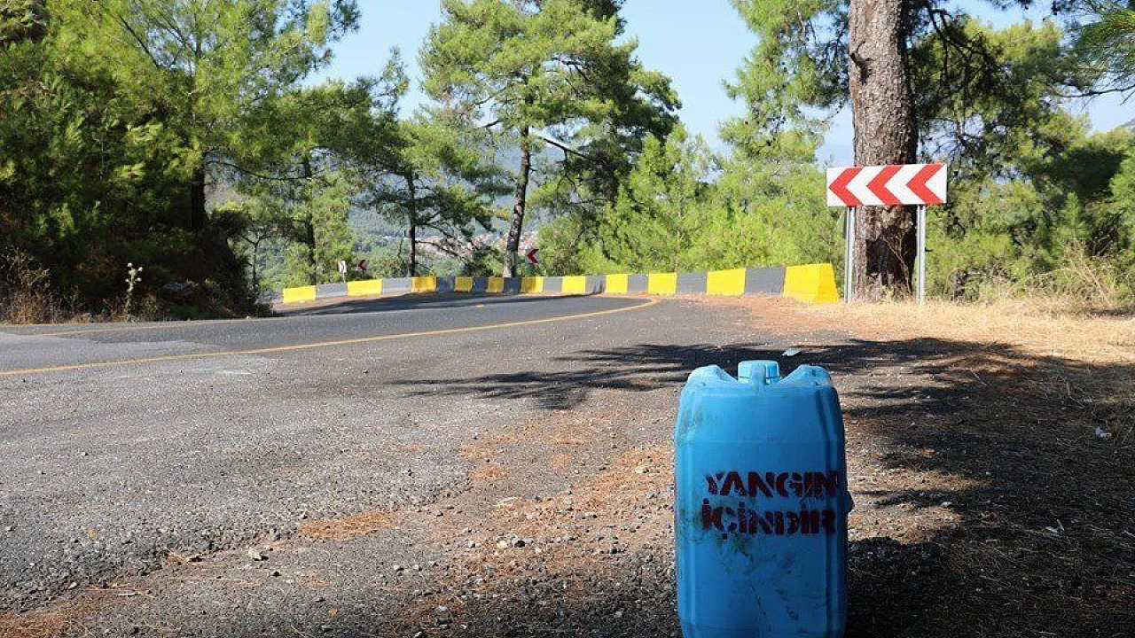 Muğla’nın Marmaris ilçesinde Ali Demirtaş, Dursun Bayri, Süleyman Bayri isimli vatandaşlar ve Marmaris Belediyesi çalışanları, İçmeler Mahallesi’ni Turunç Mahallesi’ne bağlayan ormanlık yola olası yangınları büyümeden söndürmek için su dolu bidonlar yerleştirdi. 70 adet bidonu 10 kilometrelik yol boyunca dizen vatandaşlar suların başka amaçla kullanılmamasını istiyor.