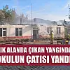 Ormanlık alanda çıkan yangında eski okulun çatısı yandı