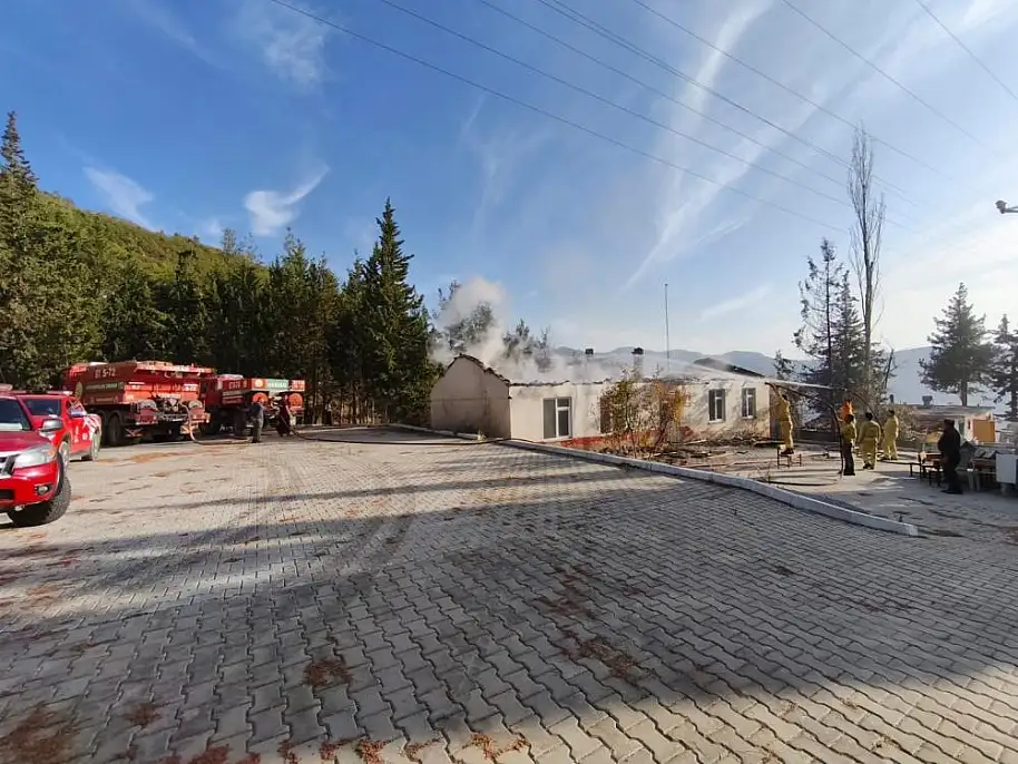 Antalya'nın Gazipaşa ilçesine bağlı Yeni Güney Mahallesi'nde ormanlık alanda çıkan yangında, kullanılmayan eski okul binasının çatısı yandı.
